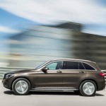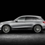 Z profilu GLC nawiązuje do aut z nadwoziem coupé – ma subtelnie opadającą linia szyb i głębokie przetłoczenie drzwi, biegnące w kierunku poszerzonych tylnych błotników. Jego elegancką, wydłużoną sylwetkę podkreśla powiększony o 118 mm rozstaw osi (2873 mm). Matowoczarne osłony nadkoli, koła o średnicy do 20 cali oraz opcjonalne stopnie progowe nie pozostawiają z kolei wątpliwości co do terenowych walorów nowego modelu.